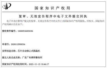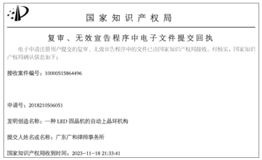 下面兩個(gè)截屏是專利無效文件的提交回執(zhí)。